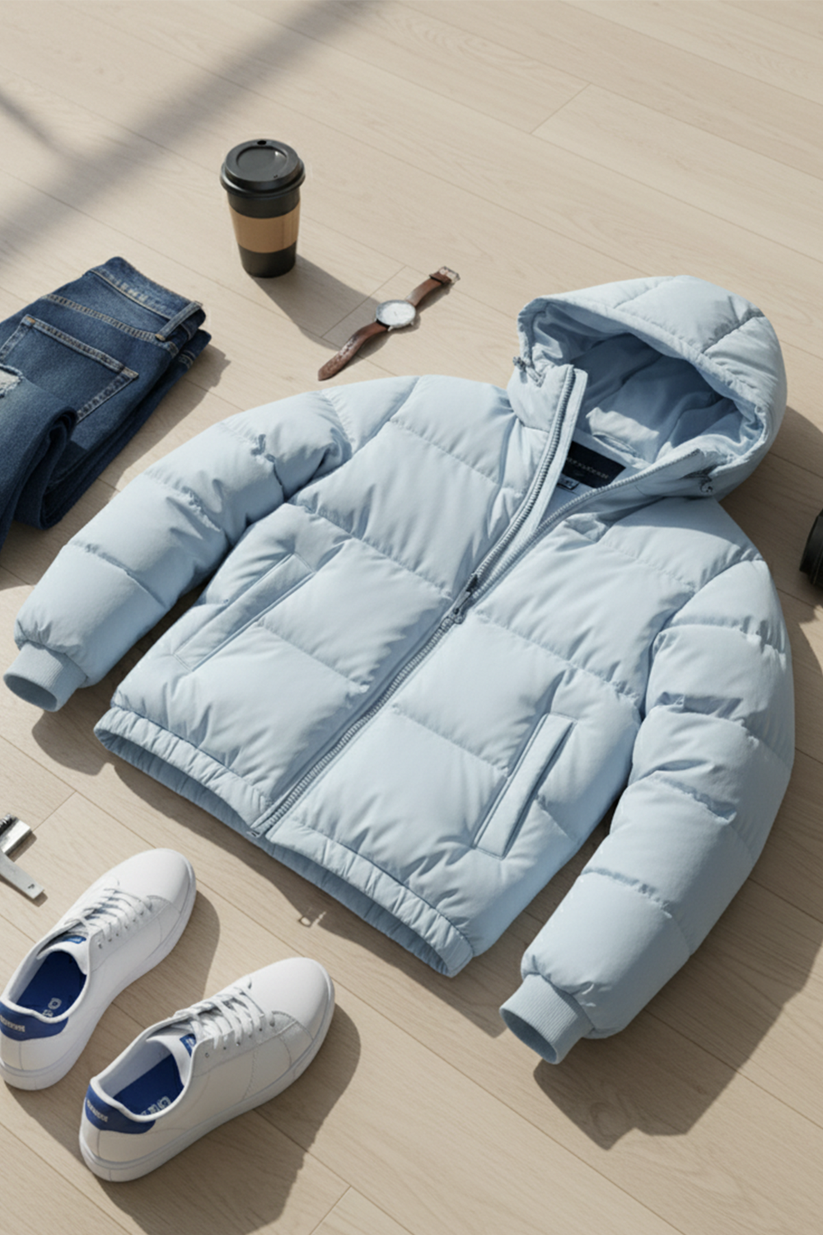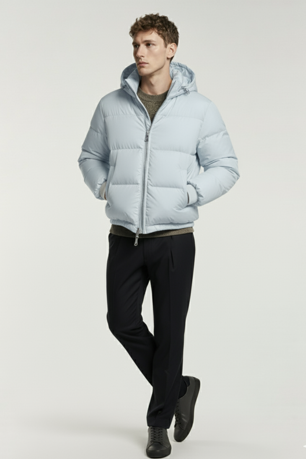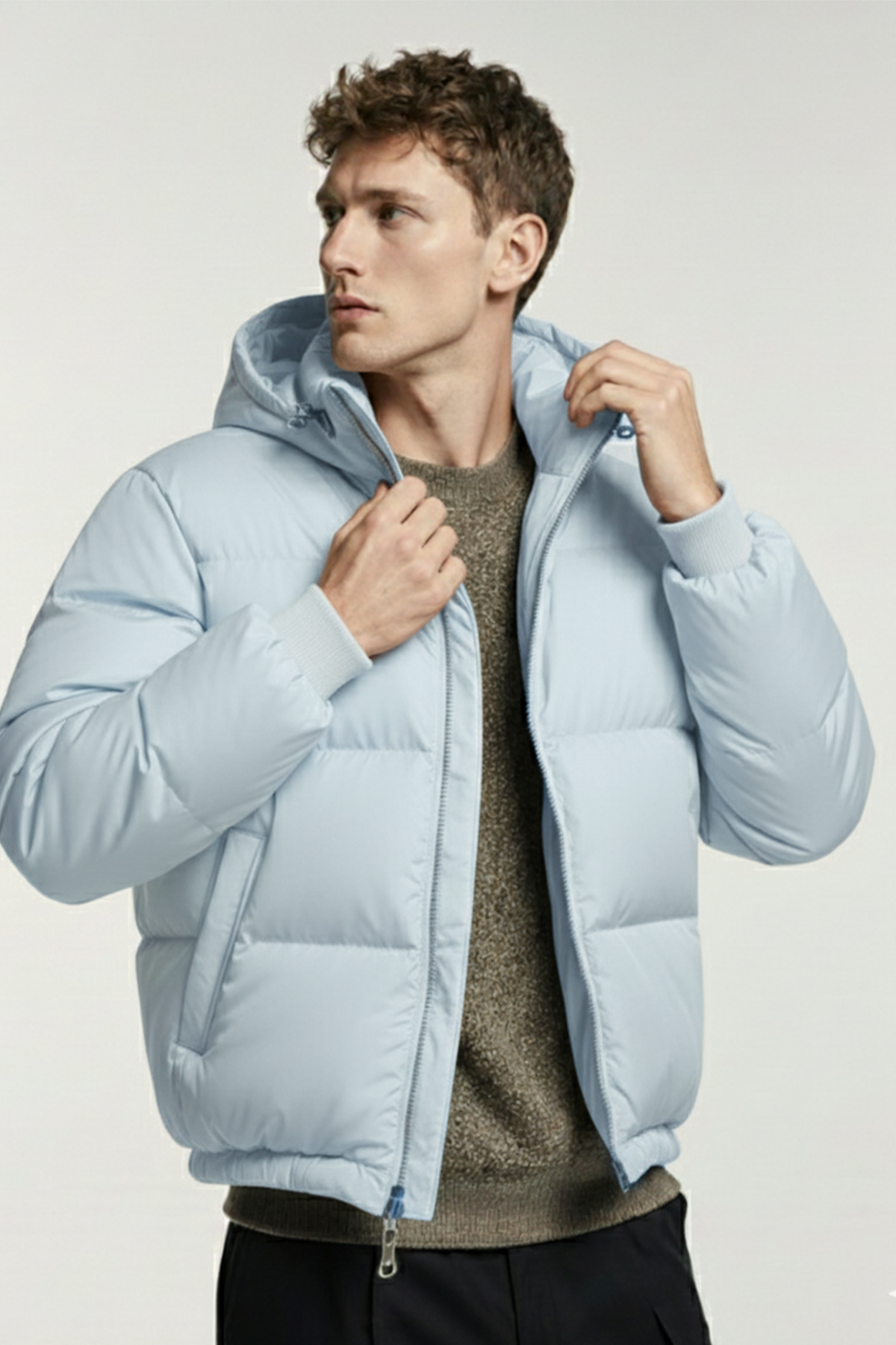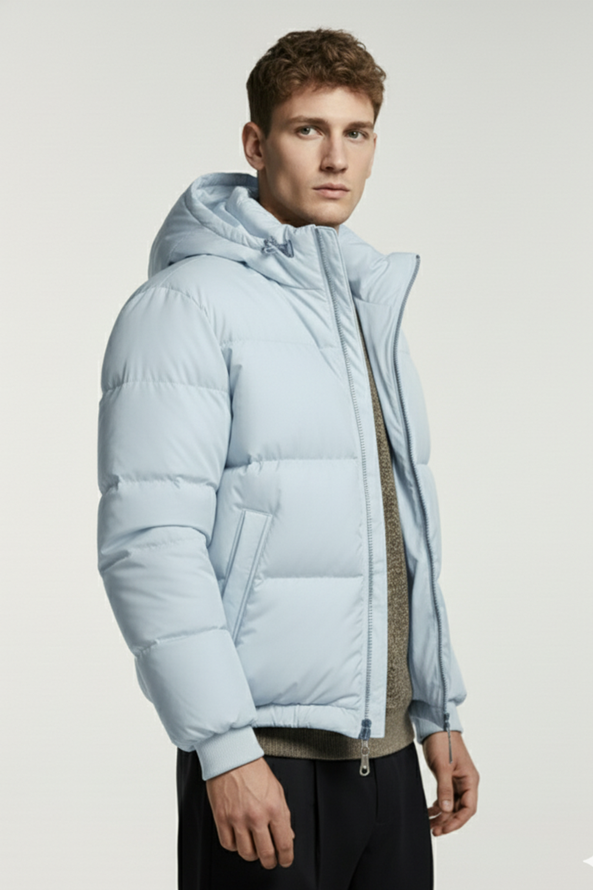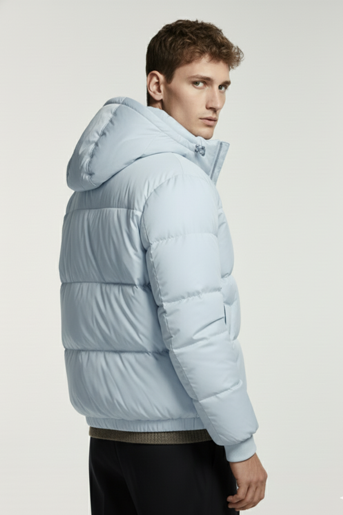 Kurtka Puchowa z Kapturem i Pikowanym Wzorem | Paweł – Jasnoniebieska